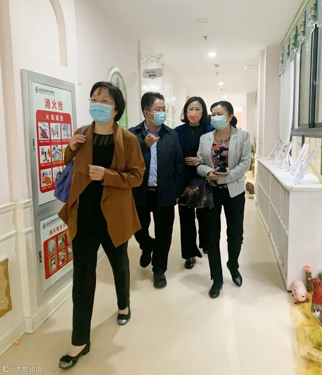 陪同考察座谈的有晶晶国际教育集团总裁陈鹏、华中区域总监李琪玲、教学主任唐艳萍、市场部负责人钟良等。