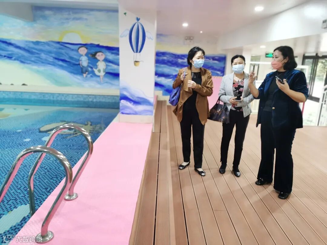 在位于东湖边的华侨城纯水岸东湖晶晶幼儿园,申军青主席和廖云部长,认真视察了幼儿园的班级教室、阅读室、手工室、户外活动中心、游泳馆、种植区和晶兜兜托育中心等场所,高度评价了园所美丽的环境和深厚底蕴的特色主题教学。