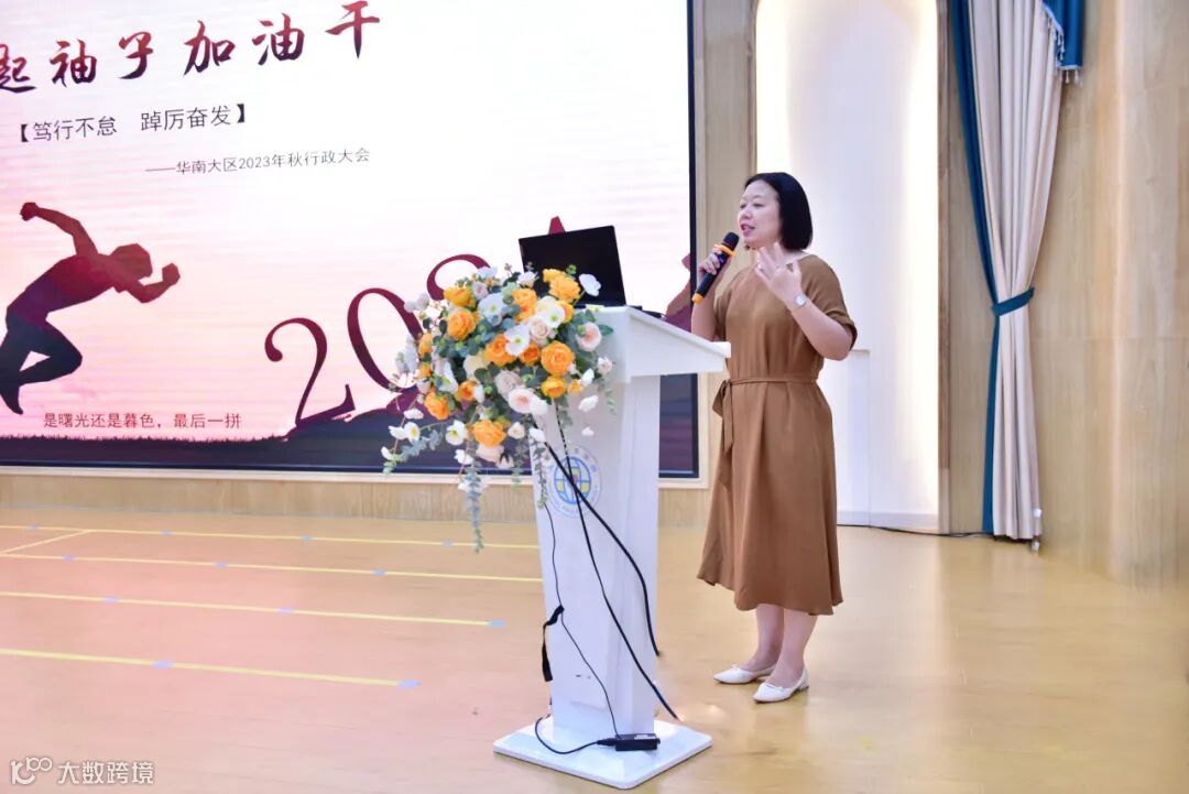 晶晶国际教育集团华南区运营总监李萍做了《华南区2023春工作总结及2023秋规划》的报告,通过详细数据,分析总结了春季学期各项运营工作完成情况和新学期计划。李萍指出:新学期,全体管理人员要凝心聚力抱成团,撸起袖子加油干;要持续努力、保持活力、感恩感谢和保持信心;要抓好招生,做好各项品质安全管理工作。