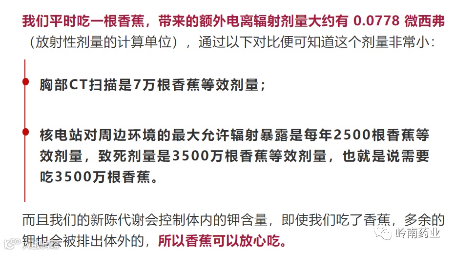 直接上答案:香蕉中钾-40的含量比起能致癌的辐射量来说,如同尘埃。