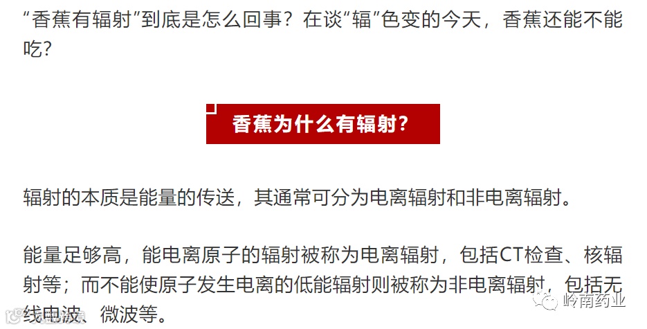很多人就联想到CT检查、核泄漏、原子弹爆炸:辐射致癌,难道吃香蕉会致癌?