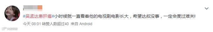 #吴孟达患肝癌#登上微博热搜,不少网友为他加油打气——