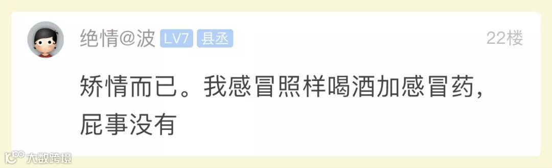 因此,要提醒大家,对于双硫仑样反应不能掉以轻心。吃了抗生素,什么酒都不要喝,此外一些含有酒精的食物药物也应当尽量避免。