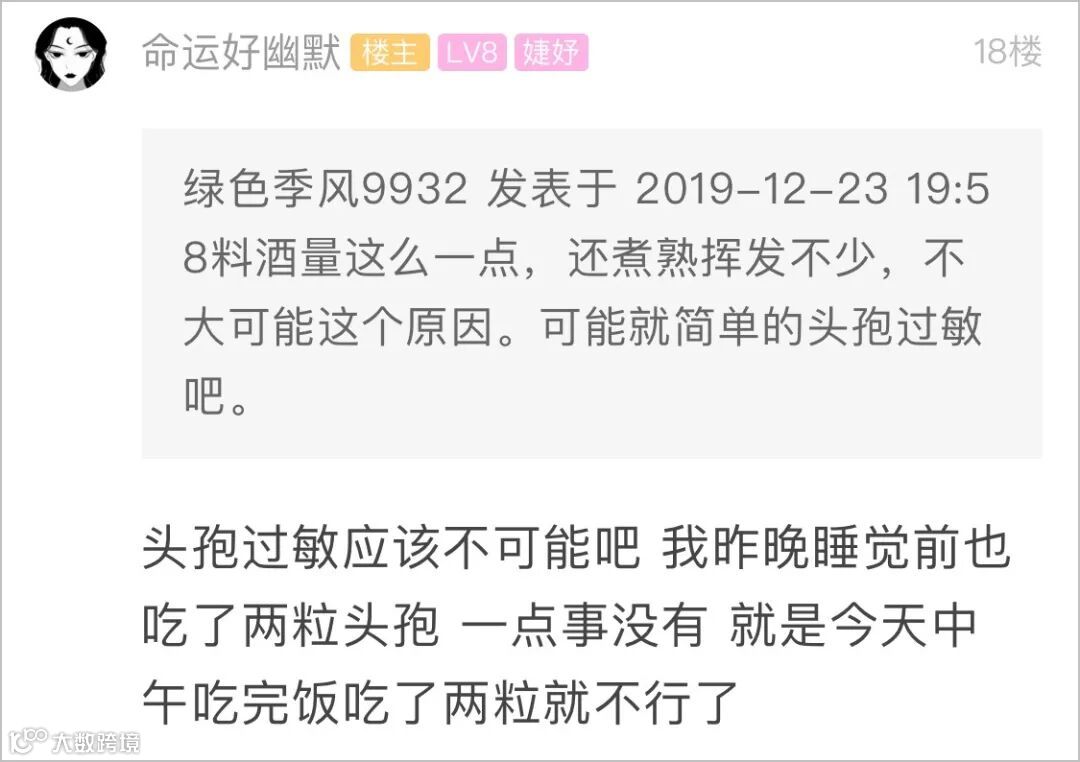 有网友认为,姑娘出现的症状可能是单纯的过敏或者食物中毒,因为做菜时放的料酒经过高温挥发,份量上不足以与头孢产生反应。
