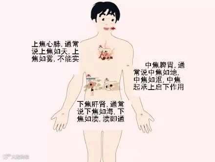 因为中焦堵住了,所以才会上焦有火下焦有寒,中医里说的上焦、下焦,都是从“三焦”引出来的。