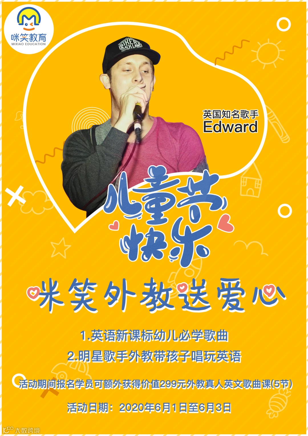 此外,外教团队的老师们还给大家准备了儿童节专属礼品,凡在儿童节当天报名外教课程的宝贝们,可额外获得价值299元的明星歌手外教说唱英语歌曲课程5节!这次机会是咪笑团队为宝贝们努力争取的超级福利,不要错过哦!