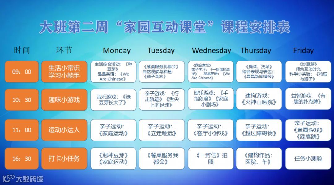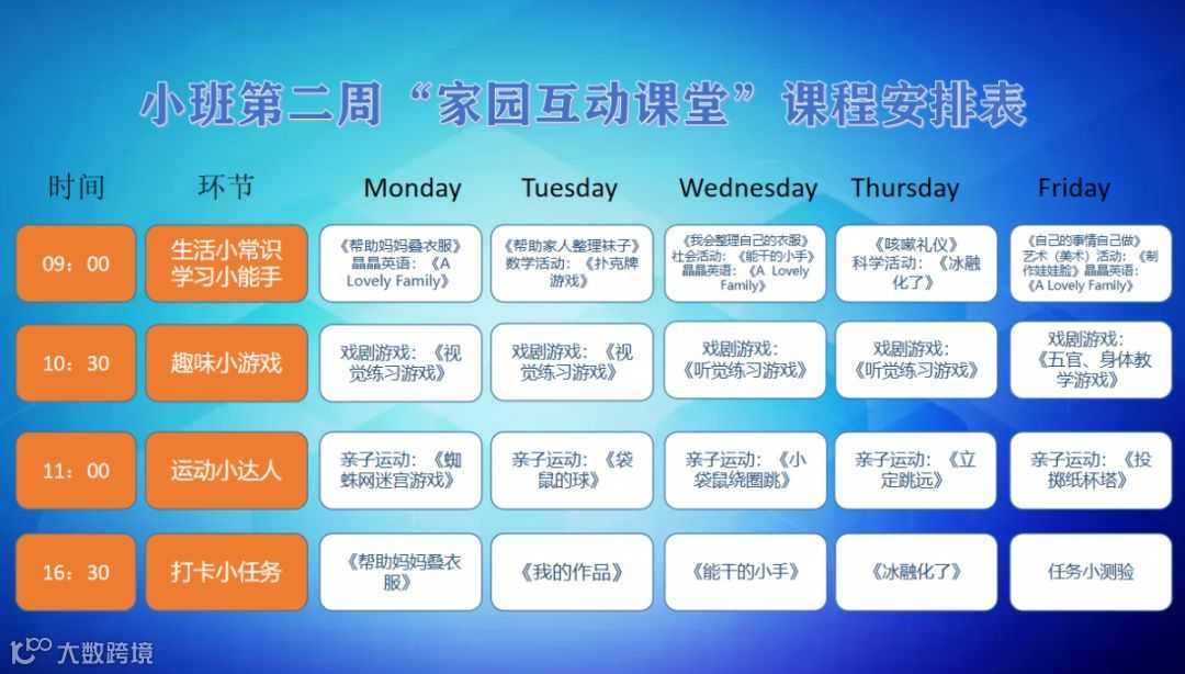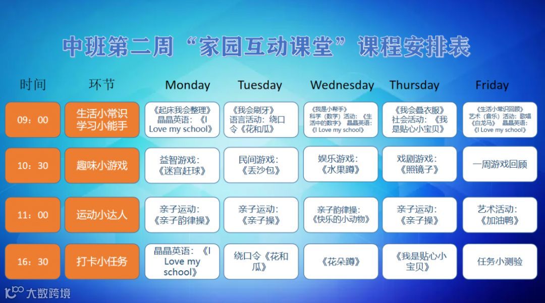 “线上家园互动课堂”第二周课程安排