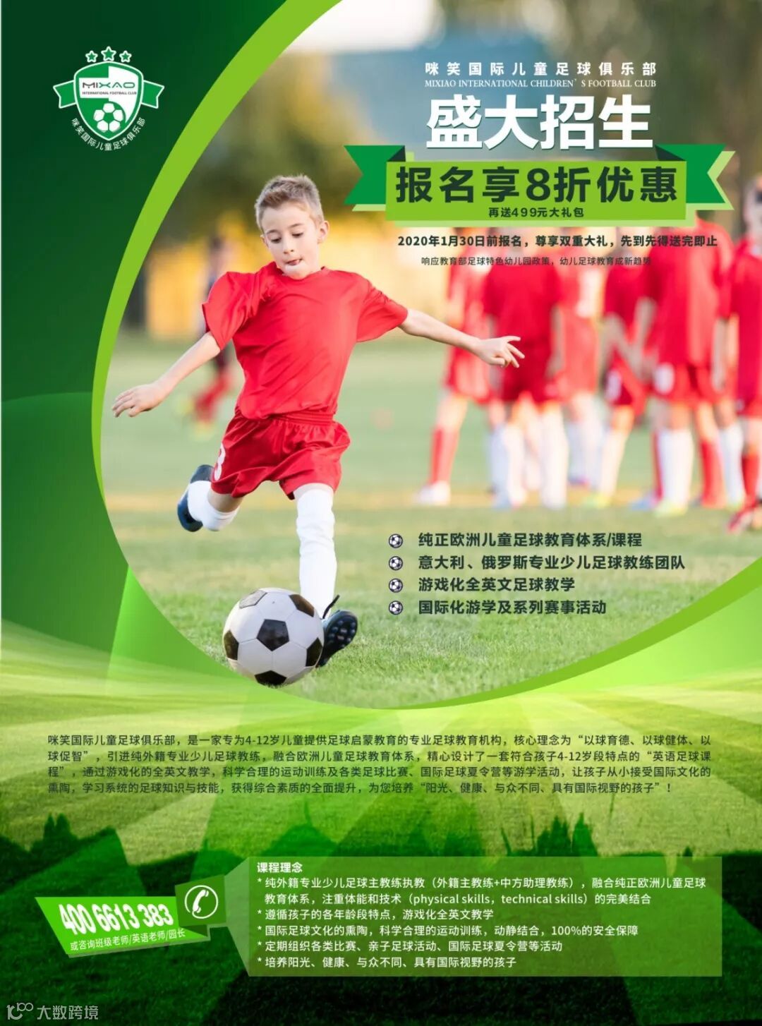 报名即送价值499元的足球装备套装(球衣、背包、足球)。