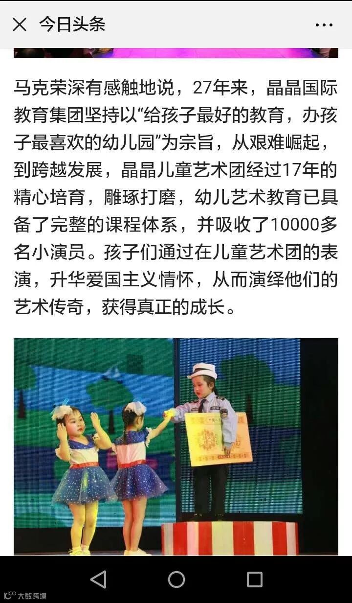 活动结束后,多家媒体对晶晶的演出活动进行了全程报道,其中,《今日头条》新闻更是作了全面、深入的解读,肯定了晶晶 “文化铸魂从幼儿教育开始”的教育精神,以及晶晶在艺术教育方面的努力与成果。