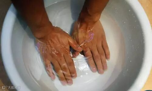 先用一盆冷水洗手,再用一盆热水洗手。