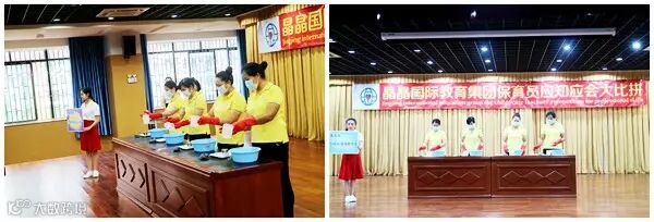 为了切实加强幼儿园保育工作,有效提高整体业务素质,真正做到“保教结合,教养并重”,提高保育老师在幼儿一日活动中的教育意识,以赛促学,2017年4月22日,晶晶国际教育集团举行了主题为“亮活展示•各显神通”的保育老师应知应会大比拼活动。
