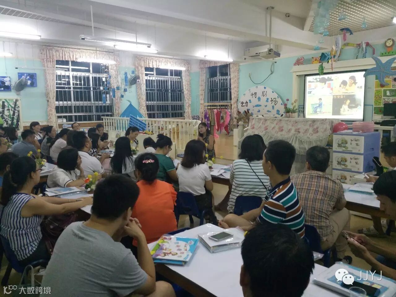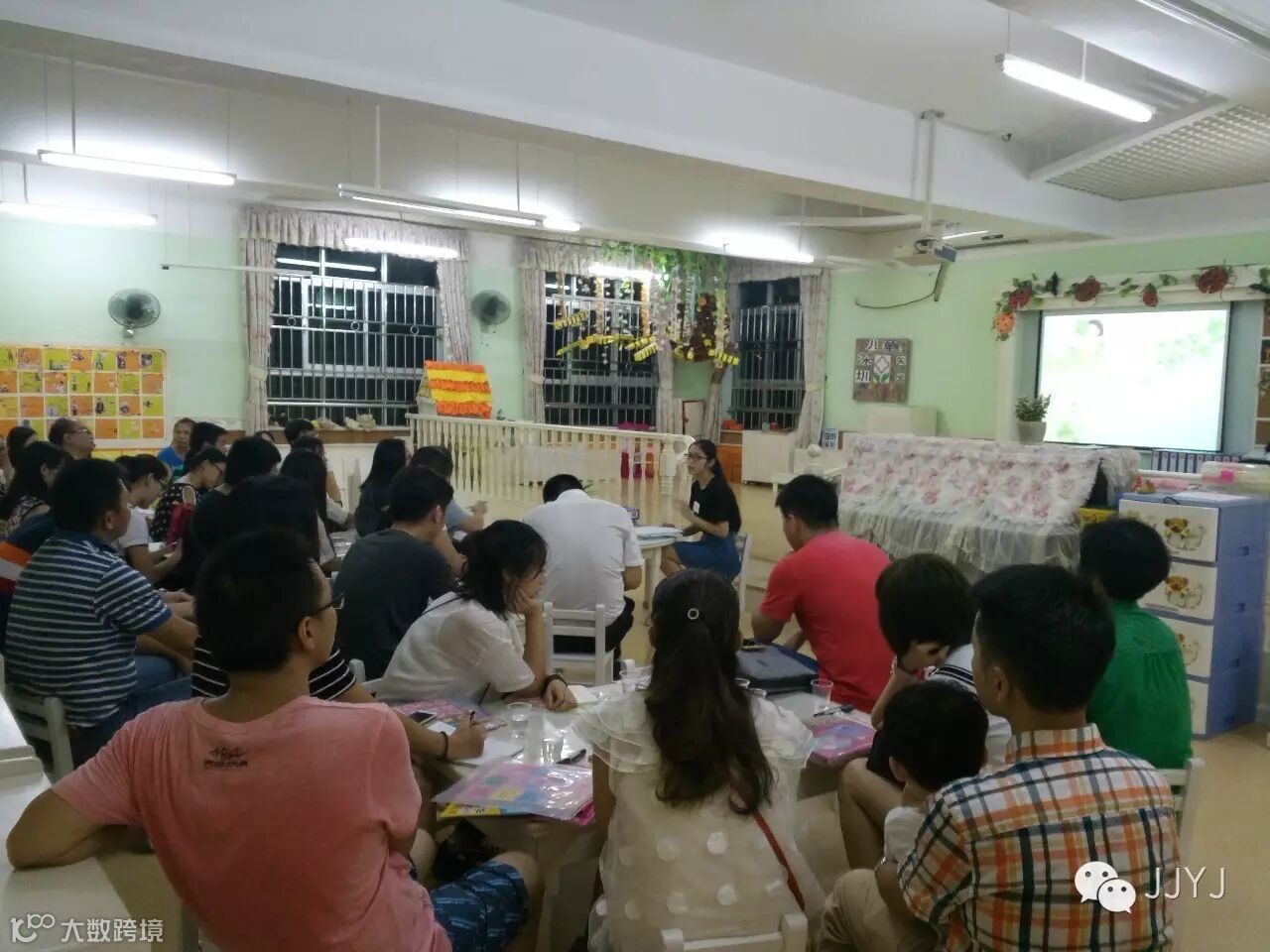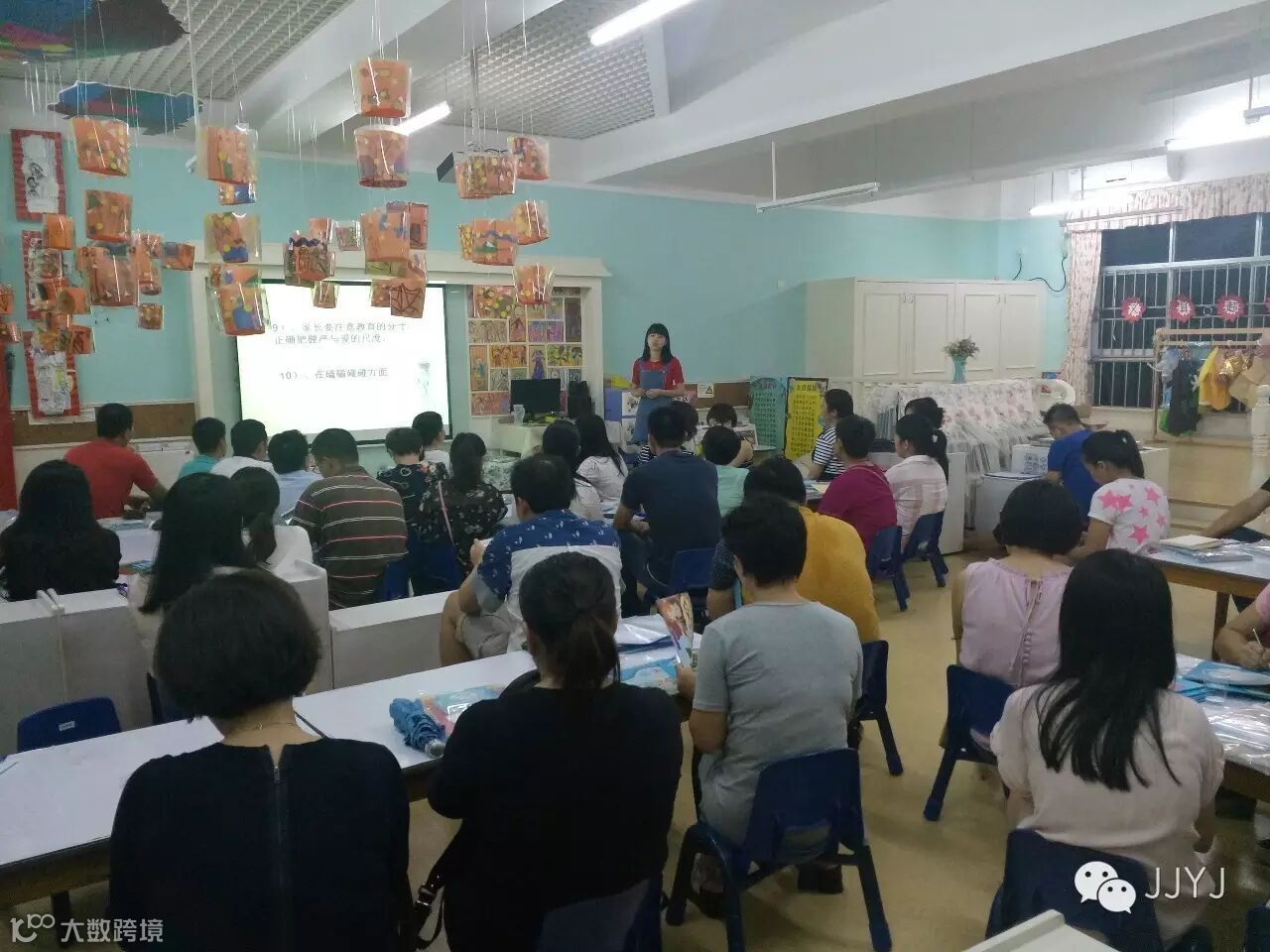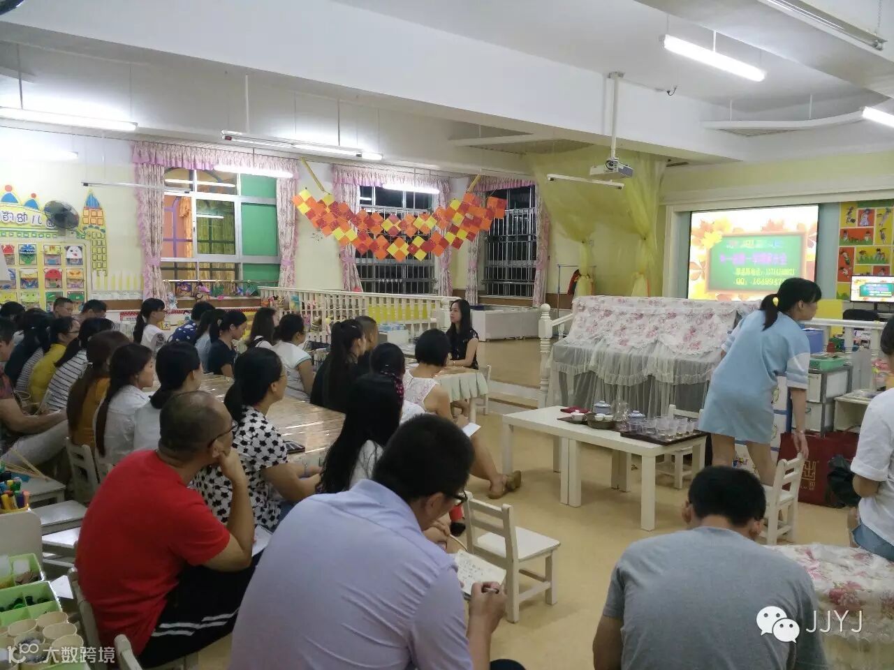 2016年9月8日晚上7:00,城建太白居幼儿园全园召开家长会,家长们下了班匆匆到来,就为了和亲爱的老师们如期而约;老师们为了迎接家长的到来,也都各处奇招,做足准备,有的准备了水果,有的摆上了茶道,为家长们布置了舒适的会议环境。