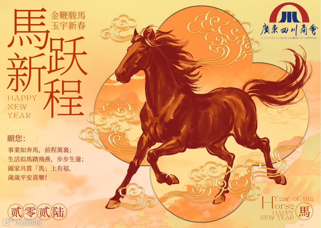 岁序更替,华章日新。值此新年佳节来临之际,广东四川商会谨向全体会员、在粤创业发展的川籍乡亲,以及所有关心支持商会建设的各界朋友,致以最诚挚的问候和最美好的祝福!