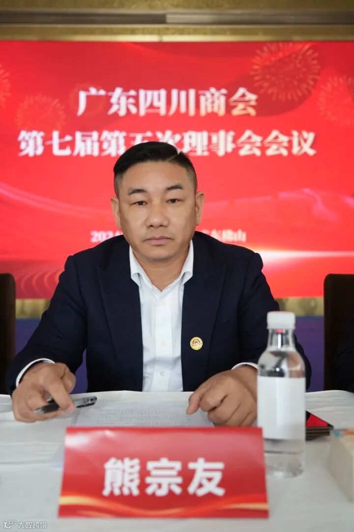 熊会长进行会议总结发言,熊宗友会长首先对2024年商会取得的丰硕成果表示充分肯定,并对全体理事会成员和会员企业的辛勤付出表示感谢。他指出,2024年是商会发展历程中的关键一年,在大家的共同努力下,商会在“川货出川”项目、产业振兴以及会员服务等方面取得了显著进展。此外,商会积极搭建资源整合平台,成功吸引了更多优秀企业和人才加入,为会员企业发展提供了强有力的支持。熊会长强调,商会将进一步巩固既有成绩,重点推动高新技术产业向四川地区的转移升级,加速川粤两地的产业协作与经济融合。同时,商会还将不断提升品牌影响力和会员服务质量,深入挖掘会员企业的潜力,助力更多企业实现可持续发展。他号召全体会员团结一致,以坚定的信心和饱满的热情,共同谱写商会发展的新篇章,为川商事业的繁荣贡献更大的力量。