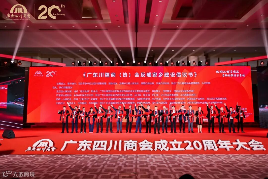 2023年12月28日下午,由四川省工商联、四川省经合局、广东省民政厅、广东省工商联、四川省政府驻广办、川商总会共同指导,广东四川商会主办的“砥砺二十载累硕果 启航新征程共卓越”广东四川商会成立20周年大会在广州朗豪大酒店隆重举行。