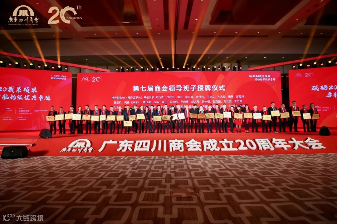大会对二十年来为商会作出突出贡献的行业精英和优秀企业进行了表彰,为第七届广东四川商会领导班子举行了授牌仪式。