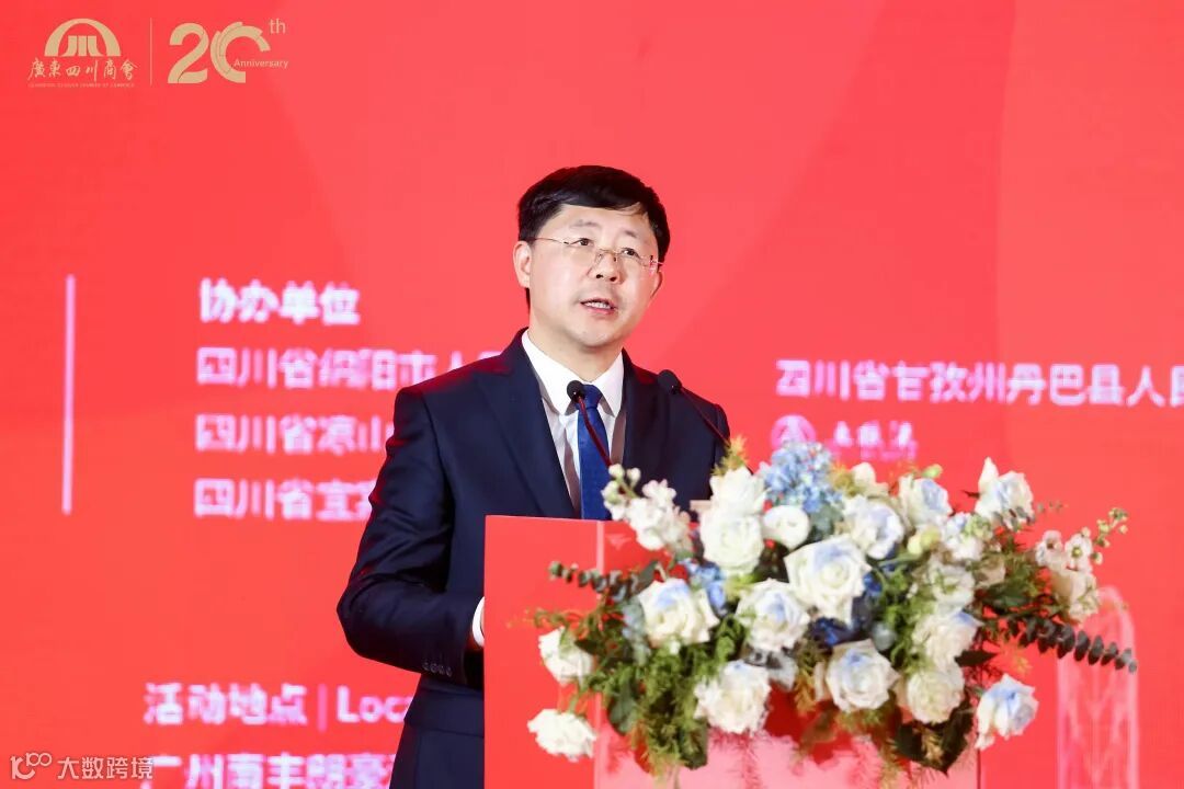在此起彼伏的掌声中,四川省人民政府驻广州办事处主任王德胜对大会表示祝贺。他认为,二十年的励精图治、二十年的团结奋进,广东四川商会栉风沐雨,开拓进取,商会的社会知名度和美誉度不断攀升,商会企业家对社会,对家乡的贡献度越来越大,相信广东四川商会在新征程路上宏图展翅,蓬勃发展。