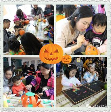 接下来每个班级准备了非常精彩亲子游戏,有木乃伊游戏、打南瓜、保龄球、万圣节面具、南瓜灯制作……