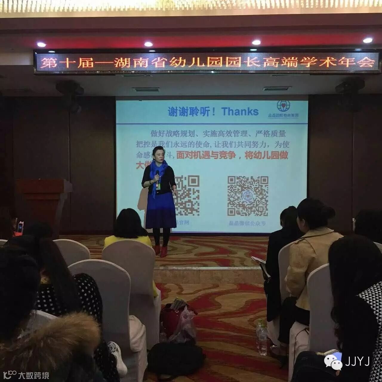 本次是第10届湖南幼教年会,我们的马克荣董事长也荣幸受邀在此次幼儿园园长高端学术精英交流年会上发表演讲,受到同行业幼教人的一致好评,深度诠释出了幼教行业也需要做好战略规划,实施高效的管理,严格把控教学质量,做好完整的管理体系,让所有的幼教人从中深受启发。晶晶人也将一直坚持以“给孩子最好的教育,办孩子们最喜欢的幼儿园”为宗旨的办学理念,用研究与创新,培养阳光、健康、自信、智慧、富有领导风范的未来人才为教育理念不断努力……