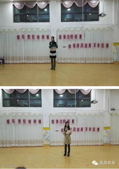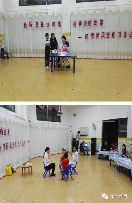 为树立良好师德风范,提升教师思想道德素质,展示教师的师德修养,2015年12月10日天健现代城晶晶幼儿园在二楼舞蹈室举行师德师风创意演讲比赛,现代城幼儿园坚持以“师德为先,幼儿为本,专业为重,终生学习”的理念来开展了本次师德师风创意演讲比赛。