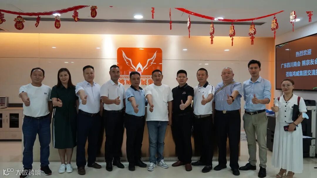 2022年5月25日下午,商会会长熊宗友、常务副会长赵顺宁、秘书长蒲芳,佛山分会会长杜成平,科技分会会长向川宜、理事长邹斌、名誉会长杨伟和秘书长邓西北等一行莅临鸿威集团参观座谈交流,受到了鸿威集团董事长王照云、云上会展负责人蔡成等热情接待。