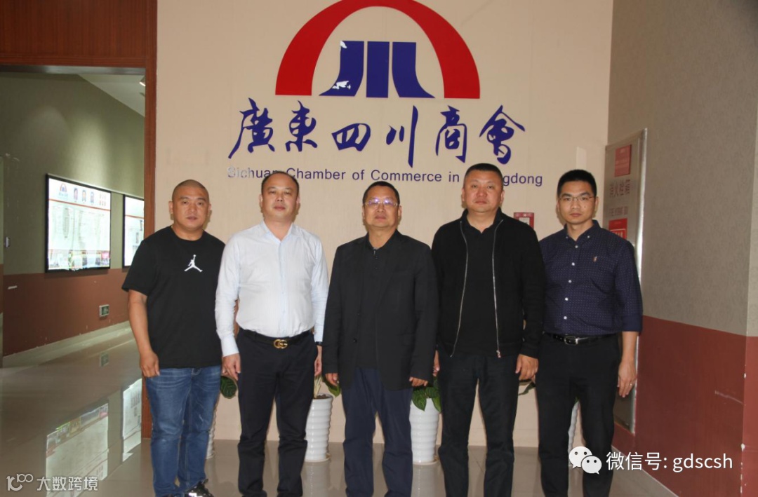广东四川商会会长王开庆(左三)、青海省四川商会会长邓小斌(左二)、广东四川商会理事长朱曲波(右二)合影