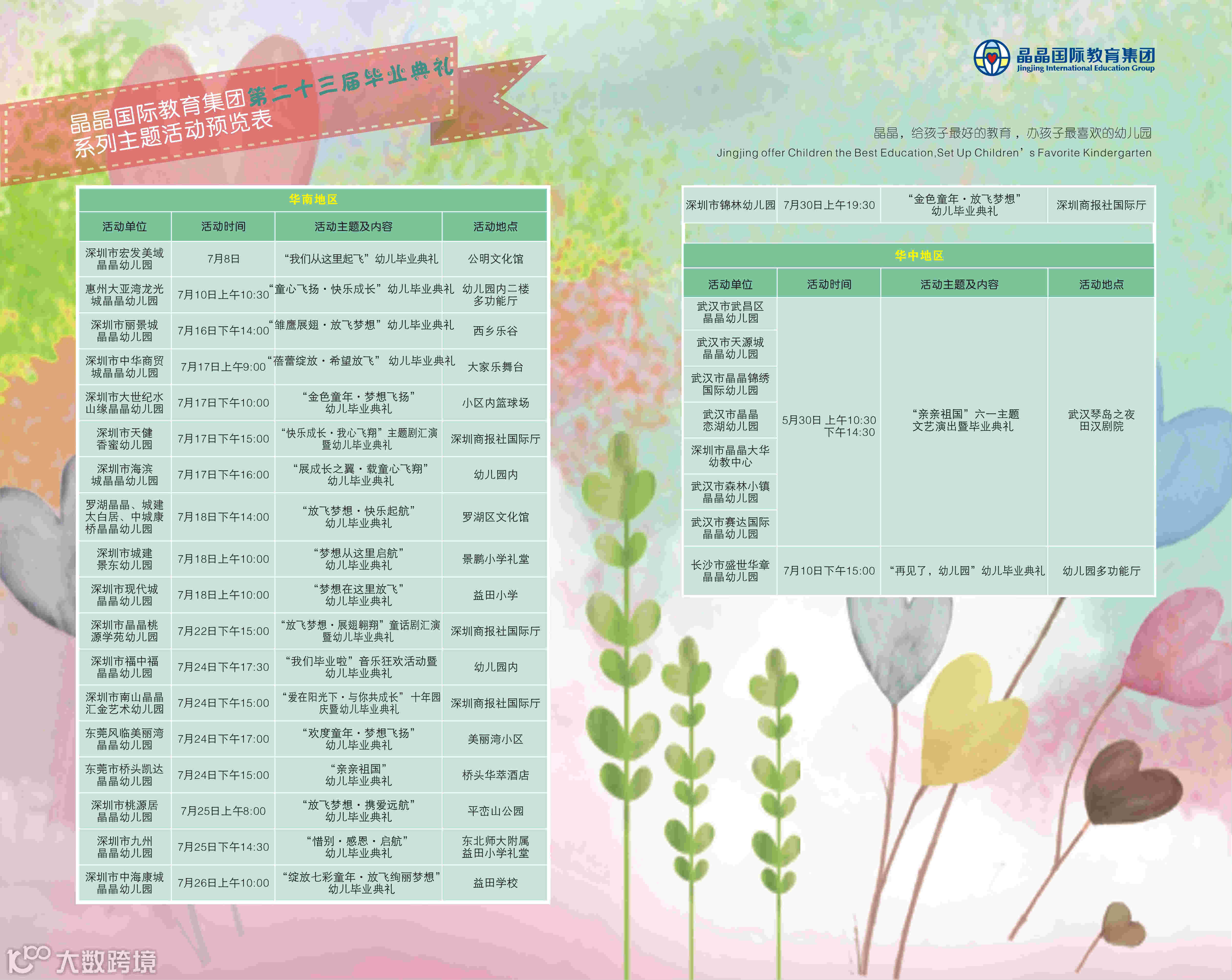 晶晶国际教育集团第二十三届毕业典礼系列主题活动预览表