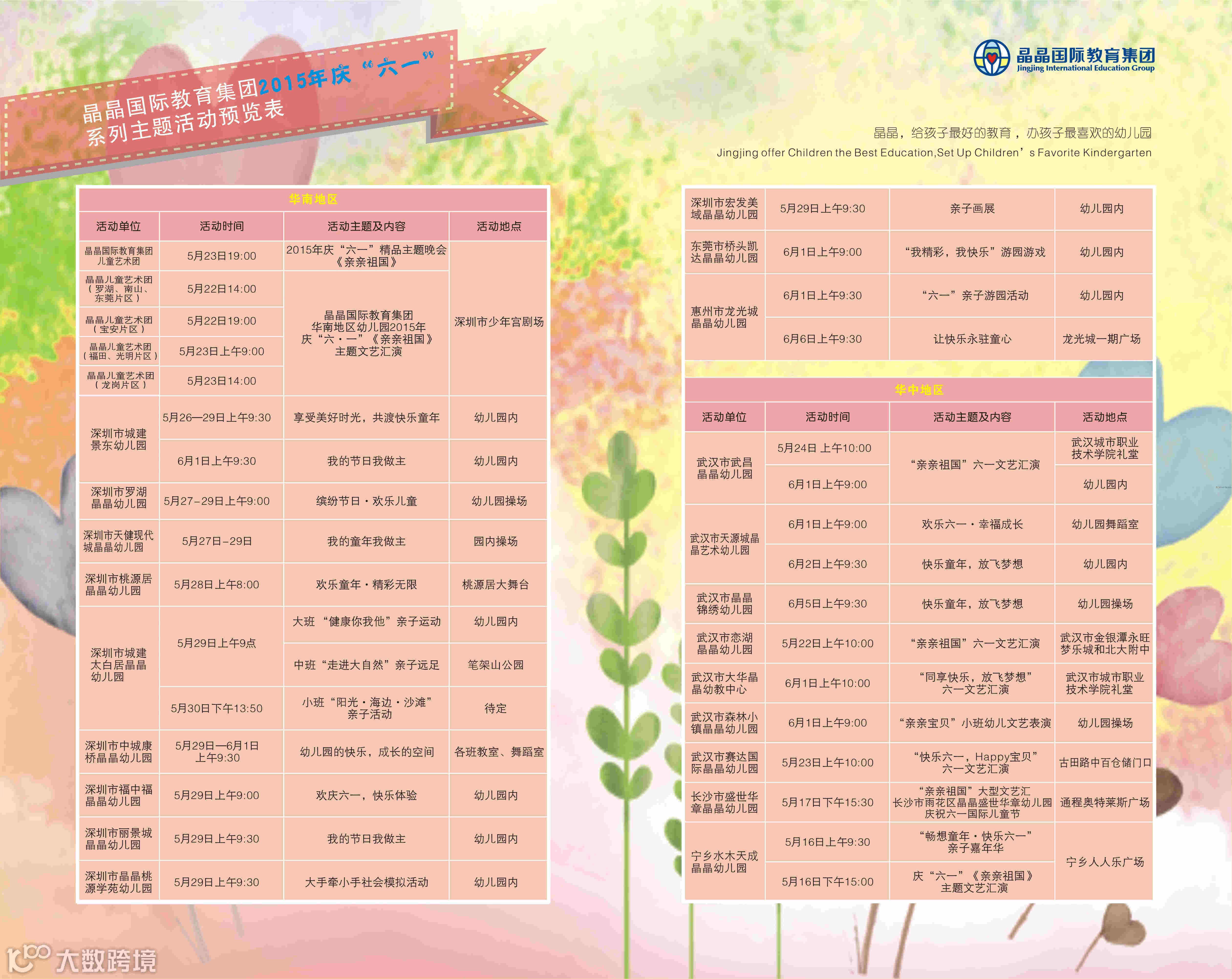 晶晶国际教育集团2015年庆“六一”系列主题活动预览表