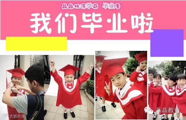 时间飞逝,转眼间晶晶桃源学苑大班的小朋友们就要离开生活了三年的幼儿园,大班毕业照记录了幼儿园最美的画面,相信在幼儿的心理会留下美好的回忆。晶晶桃源学苑毕业典礼。七月,荣耀绽放!