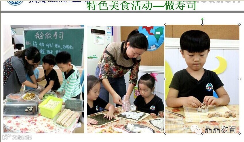 在开展主题美食课程中,从认识到深入探究,成了中海康城幼儿园的一道风景线,一系列的活动,是老师及孩子与家长一起合作,孩子们学习“制作寿司,制作爆米花,包饺子”等特色美食活动。孩子在这些活动中学会了动手制作、学会了合作、学会了交流,学会了分享,他们的小手肌肉得到了锻炼,他们的创意得到了无限的发挥,他们在自主选择、自主操作中享受了快乐,体验了成功。