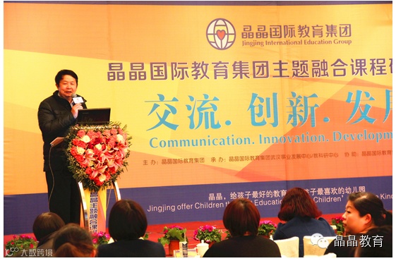 2014年冬至临近,为期两天的“四省六地”“晶晶主题融合课程”研讨会在长江之滨的武汉隆重召开。晶晶国际教育集团董事长马克荣博士向本次出席大会的嘉宾:武汉市社科院、教育局各级领导以及来自“四省六地”的幼教同仁致以热烈的欢迎和诚挚的问候,为大会拉开了热腾腾的序幕。