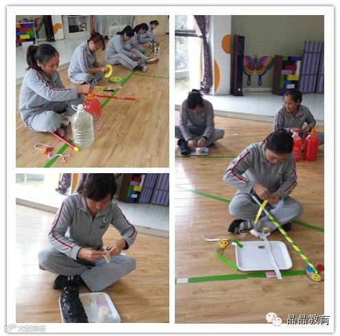 中海康城晶晶幼儿园围绕幼儿园“三个一”活动开展了保育员“一双巧手” 自制体育器械比赛。本着“一物多玩”、“一物多用”、“利废利旧”的原则。
