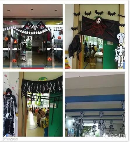 恋湖幼儿园的走廊里挂满了各种各样的蜘蛛、幽灵、巫婆和魔鬼等道具,老师们真是太有才啦!孩子们也表现得很棒!