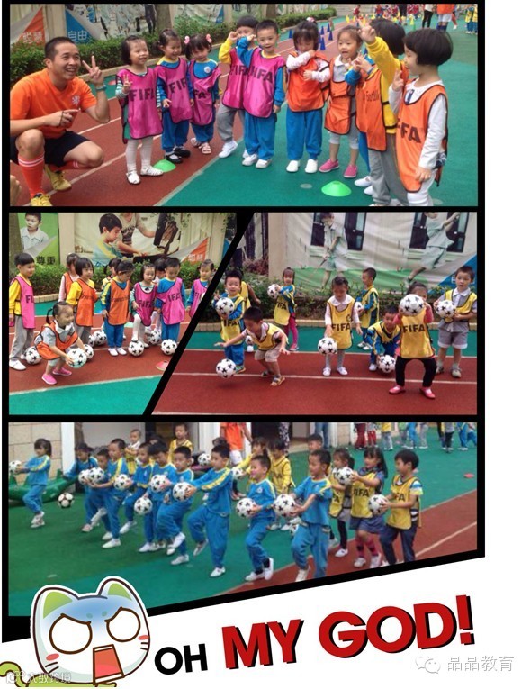 小朋友们穿上了对抗背心,活动正式拉开了帷幕。教练的课程均为游戏设计,让中大班的小朋友们一起参与到足球游戏中来。“推倒扶起”、“带球走”、“植物大战僵尸”等几轮游戏过后,孩子们和教练已经打成一片,直呼“太好玩了!”“我好喜欢足球!”