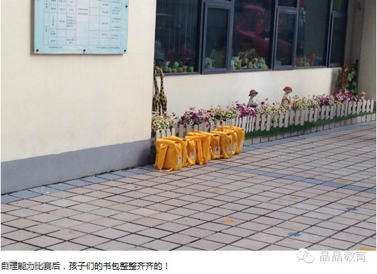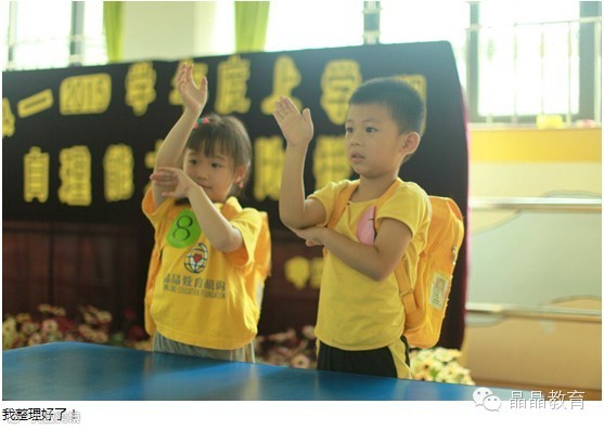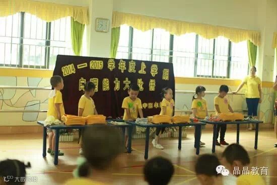 9月29日 - 30日在现代城晶晶幼儿园里举行了小班,中班,大班的自理能力比赛。根据幼儿年龄特点和发展水平制订了比赛项目:小班的穿袜子、穿鞋子、穿珠子;中班的整理书包,穿袜子、穿鞋子、穿园服、叠小被子;大班的穿袜子、穿鞋子、穿园服、叠大被子。比赛形式先是在每个班举行预赛,接着集中幼儿在大操场进行决赛。