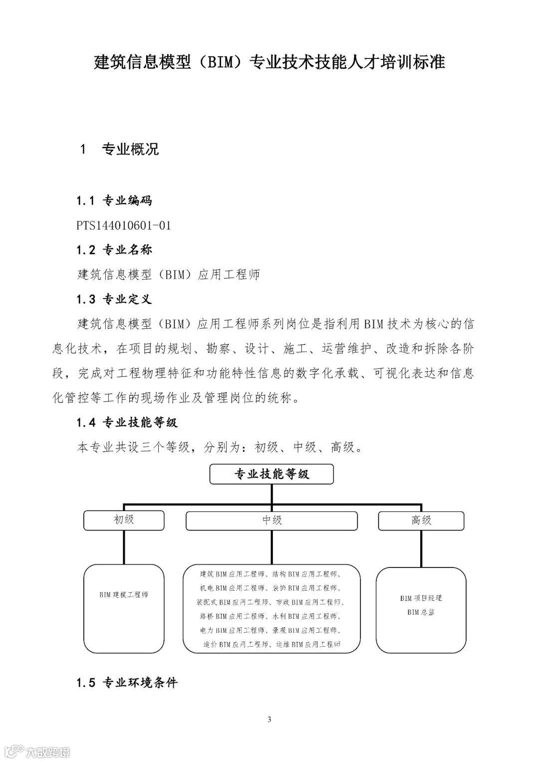 为了进一步完善行业技术技能专业标准体系,为专业技术技能人才教育和培训提供科学、规范的依据,工业和信息化部教育与考试中心依据当前建筑行业信息化发展的实际情况,组织有关专家,进行《建筑信息模型(BIM)专业技术技能人才培训标准》(以下简称“标准”)的编写制定。