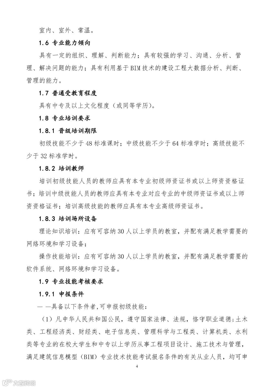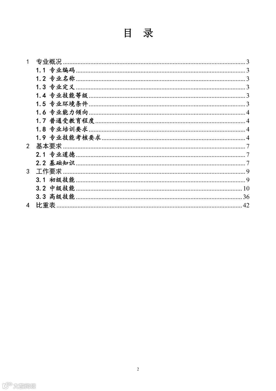三、本《标准》依据有关规定将本专业分为三个等级,包括专业概况、基本要求、工作要求和比重表四个方面的内容。