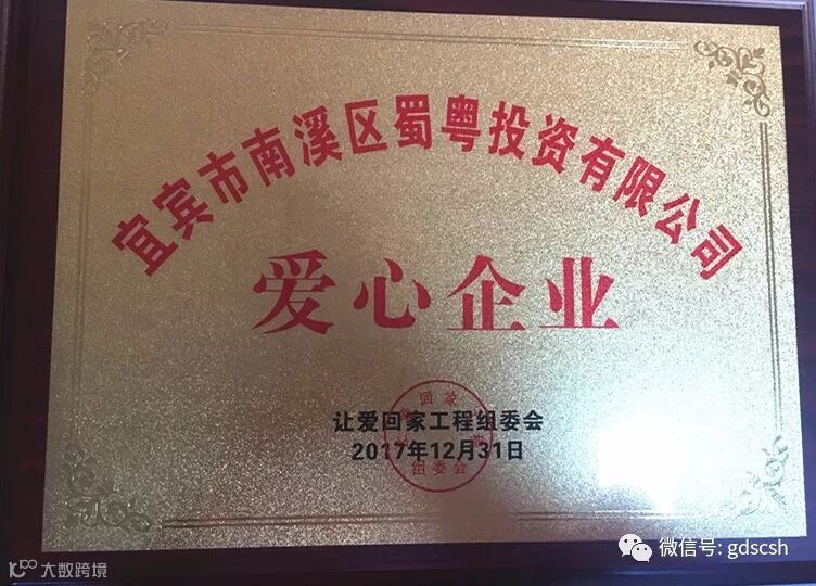 我会会长(王开庆)企业——宜宾市南溪区蜀粤投资有限公司荣获“爱心企业”表彰。