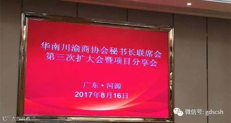 8月16日,华南川渝商协会秘书长联席会第三次扩大会议暨项目分享会在河源市翔丰国际酒店二楼隆重举行,来自广东省的三十余家川渝商协会的会长、秘书长及其代表,60多人出席会议。我会理事长朱曲波,秘书长何扬宇,常务副秘书长蒲芳出席了本次活动。