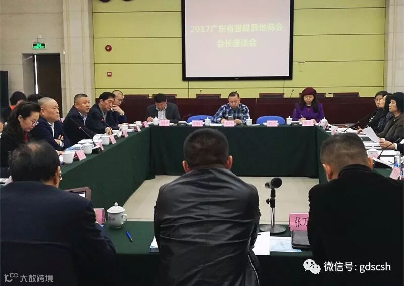 12月29日,广东省工商联举办的2017广东省省级异地商会会长座谈会在省工商联九楼会议室召开,来自工商联相关领导,广东省级异地商会会长、秘书长40人出席此次座谈会。我会理事长朱曲波应邀出席,常务副秘书长蒲芳陪同参会。