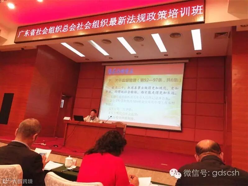 11月24日,由广东省社会组织总会举办的关于社会组织最新法规政策培训班在广州市金城宾馆举行,来自广东省的150余家社会组织的会长或秘书长参加了培训。培训班由广东省社会组织总会常务副会长兼秘书长汤涓主持。我会秘书长何扬宇参加了此次培训活动。