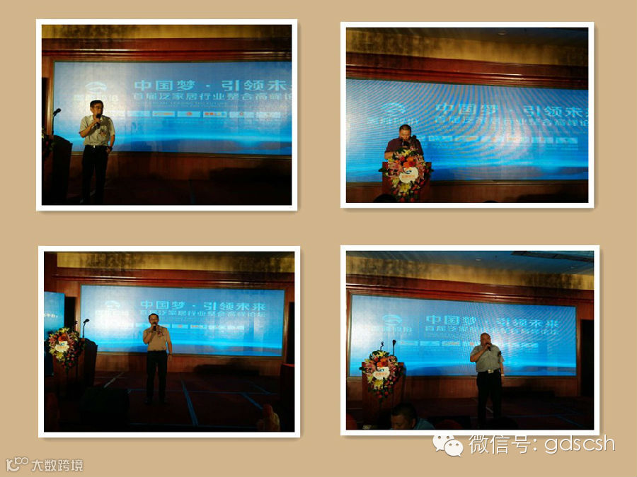 我会理事长朱曲波,特邀顾问刘福和,照明电器分会会长李朝富,电子动漫分会会长杨伟,家具分会会长刘青松分别上台为“盖雅股份泛家居行业整合论坛”致祝词,祝愿盖雅股份的明天会更好!