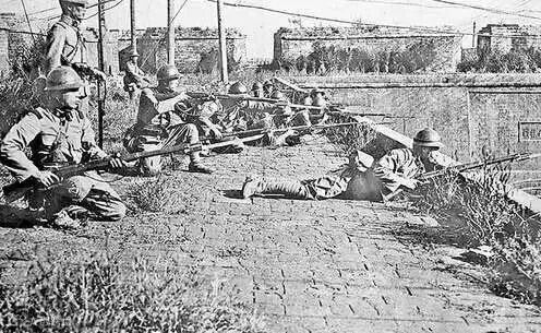 ▲1931年9月19日凌晨,日军炮轰东北军驻地北大营3小时后,有准备的日军步兵冲进北大营。