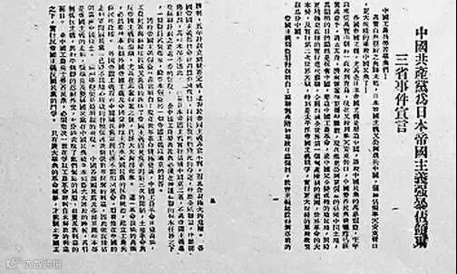 ▲1931年9月20日,中共中央发表《我国共产党为日本帝国主义强暴占领东三省事件宣言》。