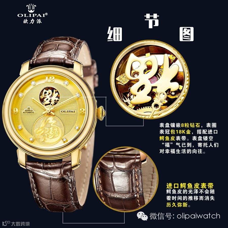 每一只欧力派金表都凝聚着精湛的制表工艺和我们对创新的不断追求,金色与皮带的搭配,这是一种让人无法抗拒的成熟与高贵,一种可以闪耀腕间的价值观的体现。
