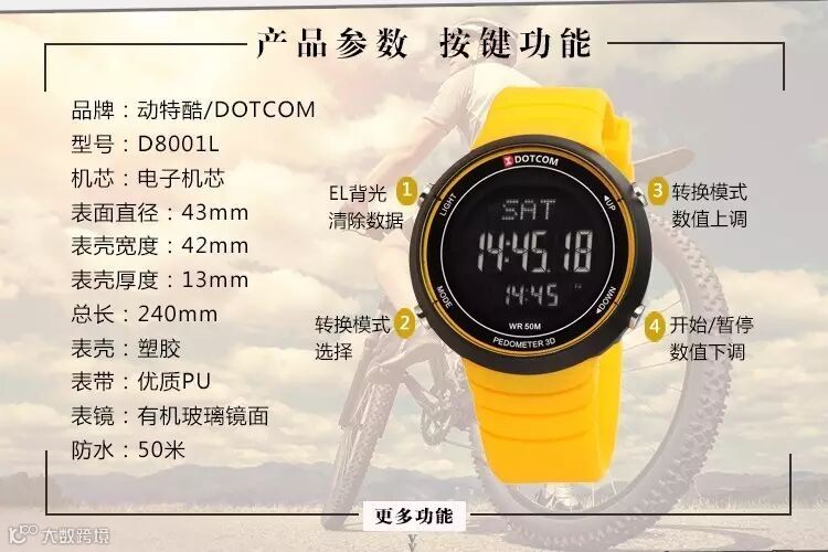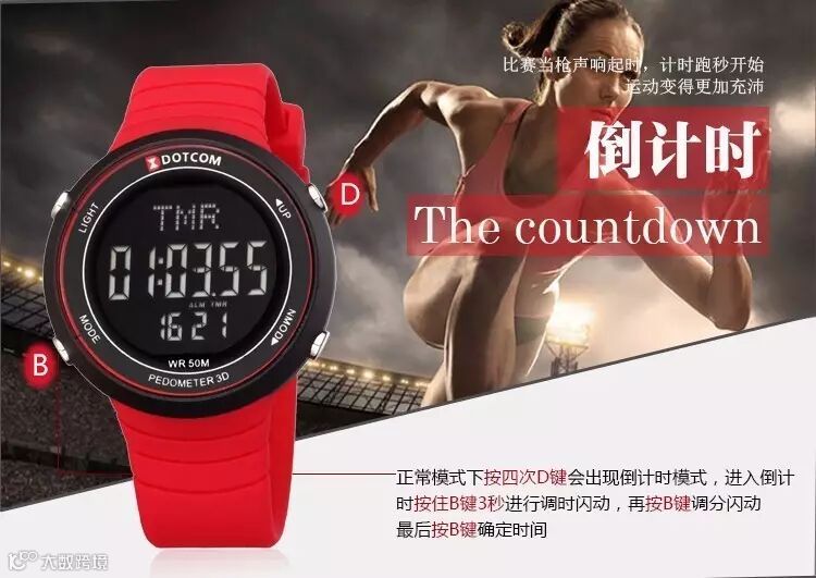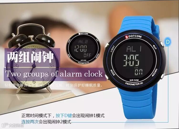 动特酷D8001闹钟、跑秒、倒计时、两地时间调法