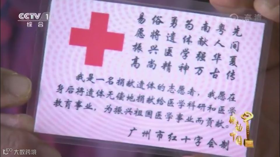 徐雪宾向现场观众展示了一张遗体捐献卡,