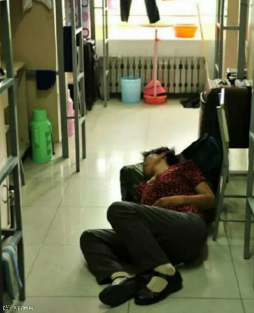 累得在坚硬的地板上睡着了