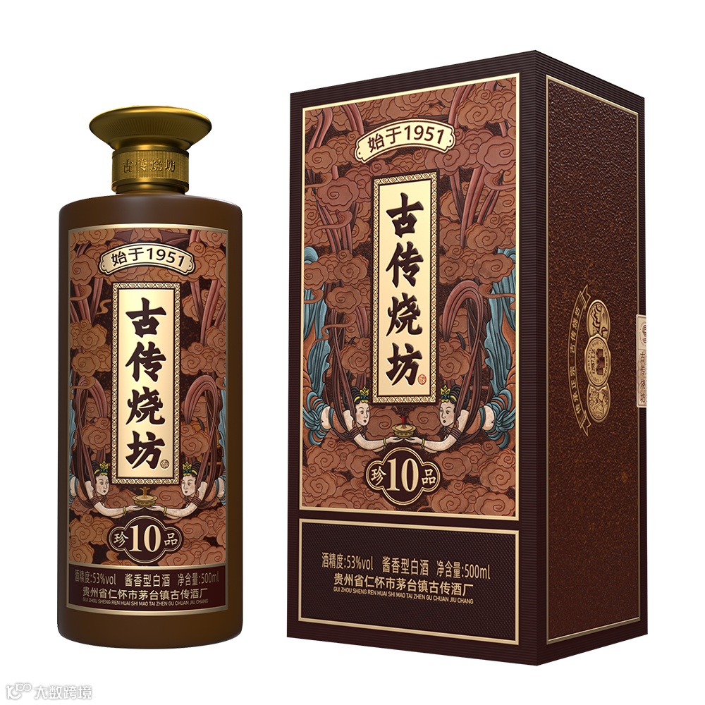 古传烧坊酒(珍品10)酒体醇厚丰满,入口绵柔,幽雅细腻,空杯留香。传承大曲酱香型白酒的高品味特质,是亲朋好友聚饮、商务接待、礼赠之上品。