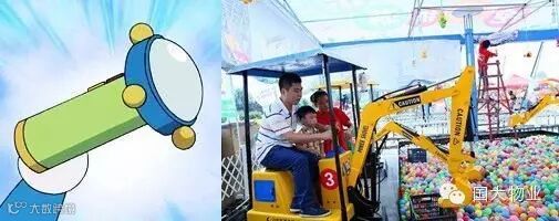 (1)缩放手电筒:多啦A梦用缩放手电筒把大人世界的挖掘机变成迷你版挖掘机,并把砖头变成七彩波波球,让宝贝们与父母一起享受挖掘彩球的乐趣。